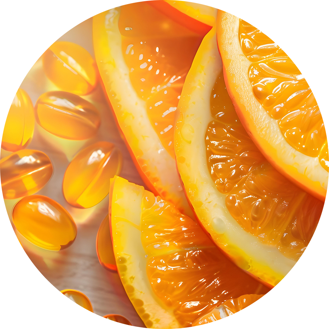 Two legendary vitamins working in harmony to fight oxidative stress and preserve youth. Vitamin E strengthens the skin barrier, locks in hydration, and calms irritation, while Vitamin C brightens tone, boosts collagen, and revives radiance. Together, they illuminate the complexion and protect it from the signs of time.