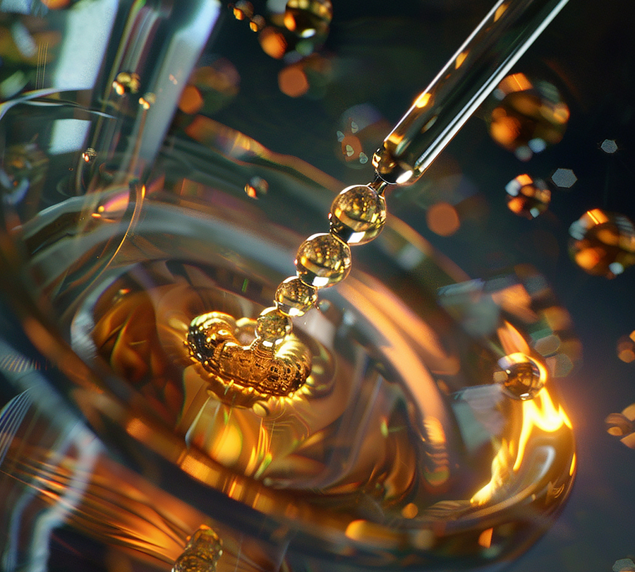 Microscopic gold particles work in harmony with collagen peptides to stimulate skin vitality. They activate collagen synthesis, firm the skin, and enhance radiance while helping active ingredients penetrate deeper layers. This precious infusion restores luminosity, reduces wrinkles, and adds a refined glow that reflects pure Swiss luxury.